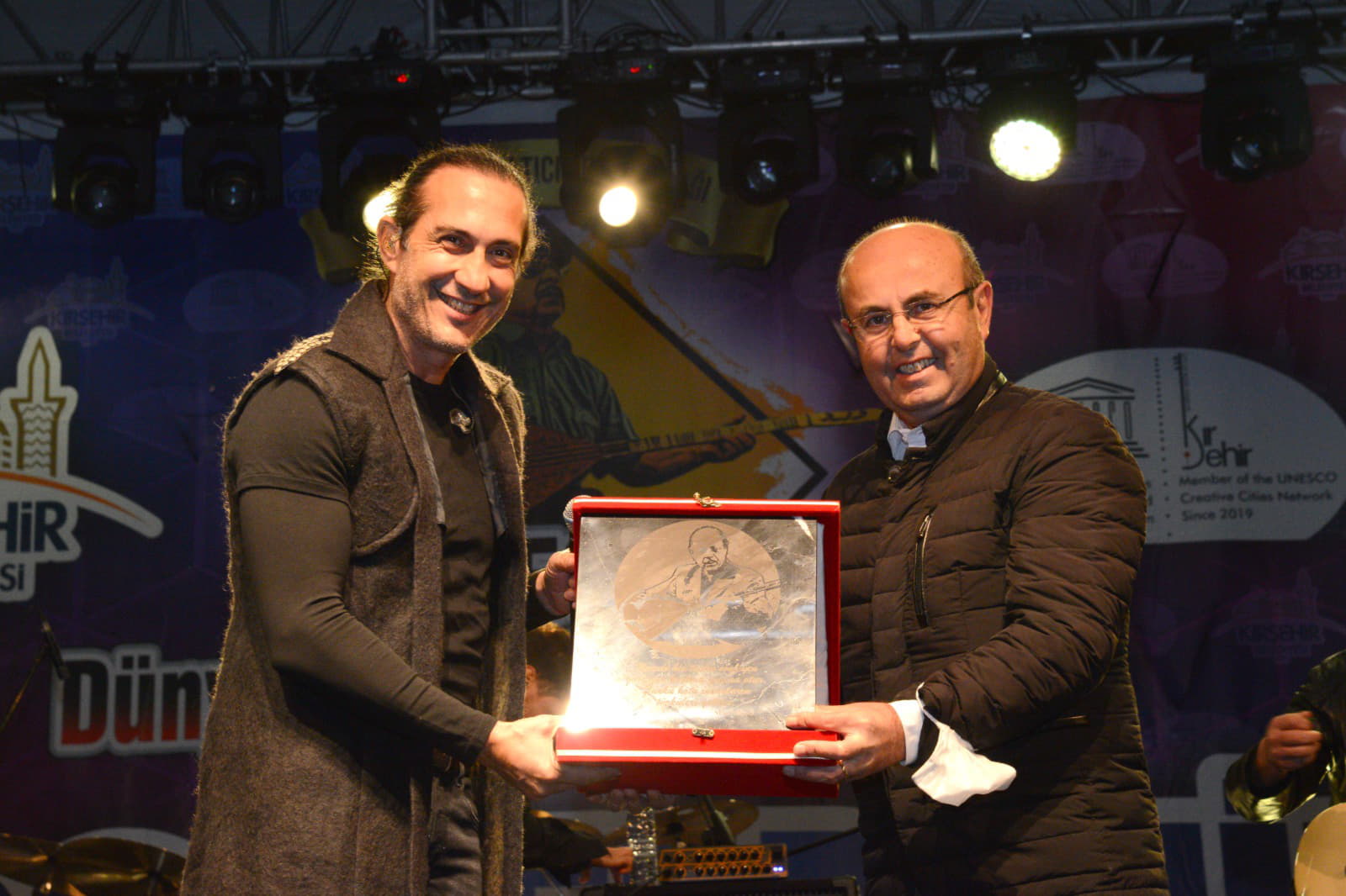 Konser sonrası ünlü sanatçı Kıraç'a Kırşehir Belediye Başkanımız Selahattin Ekicioğlu, plaket takdim etti.