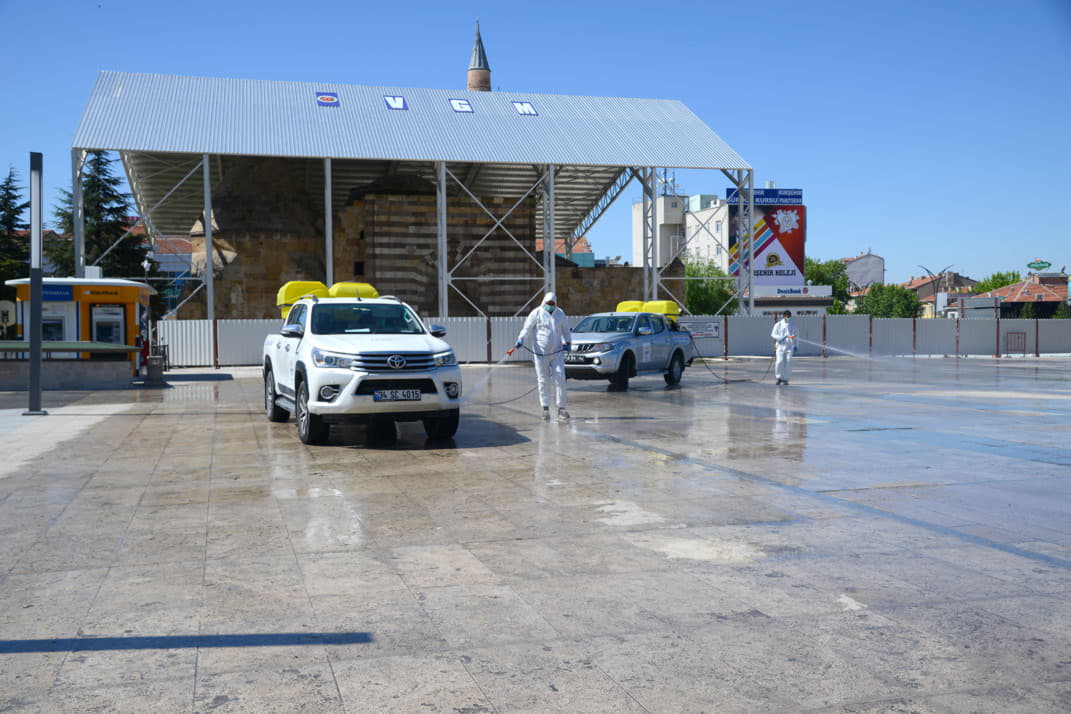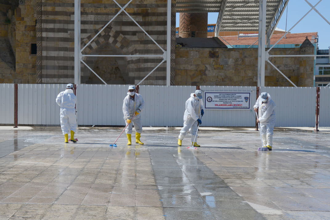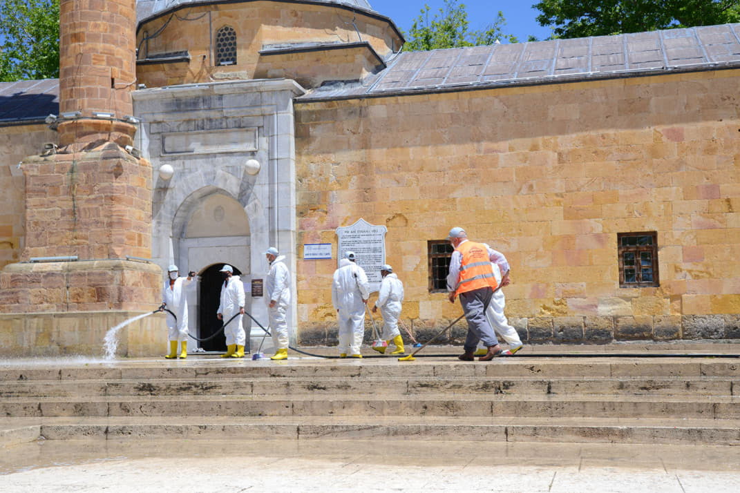 dezenfeksiyon çalışması yaptı. Cuma namazı ibadetlerini yerine getirecek