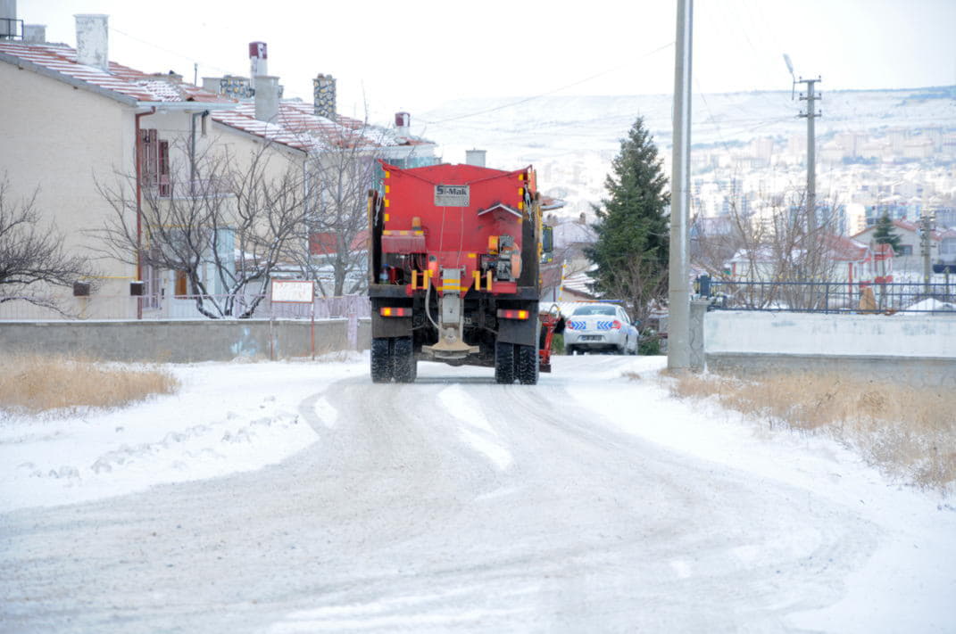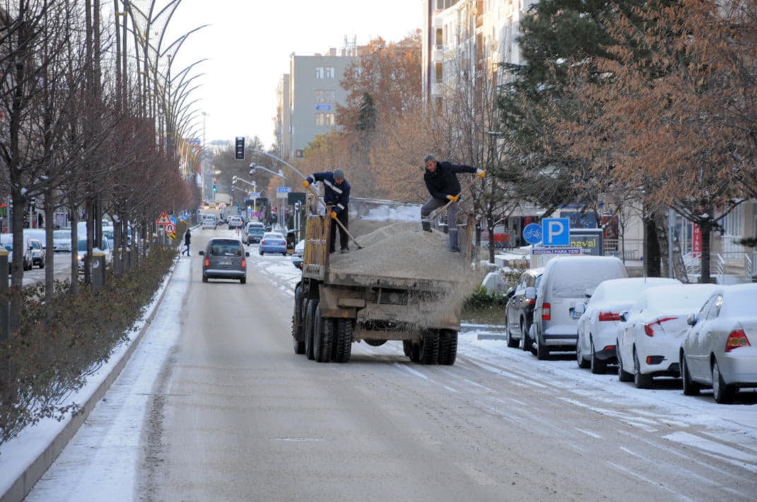 yollara Belediye iş makineleriyle anında müdahale ederken, tuzlama