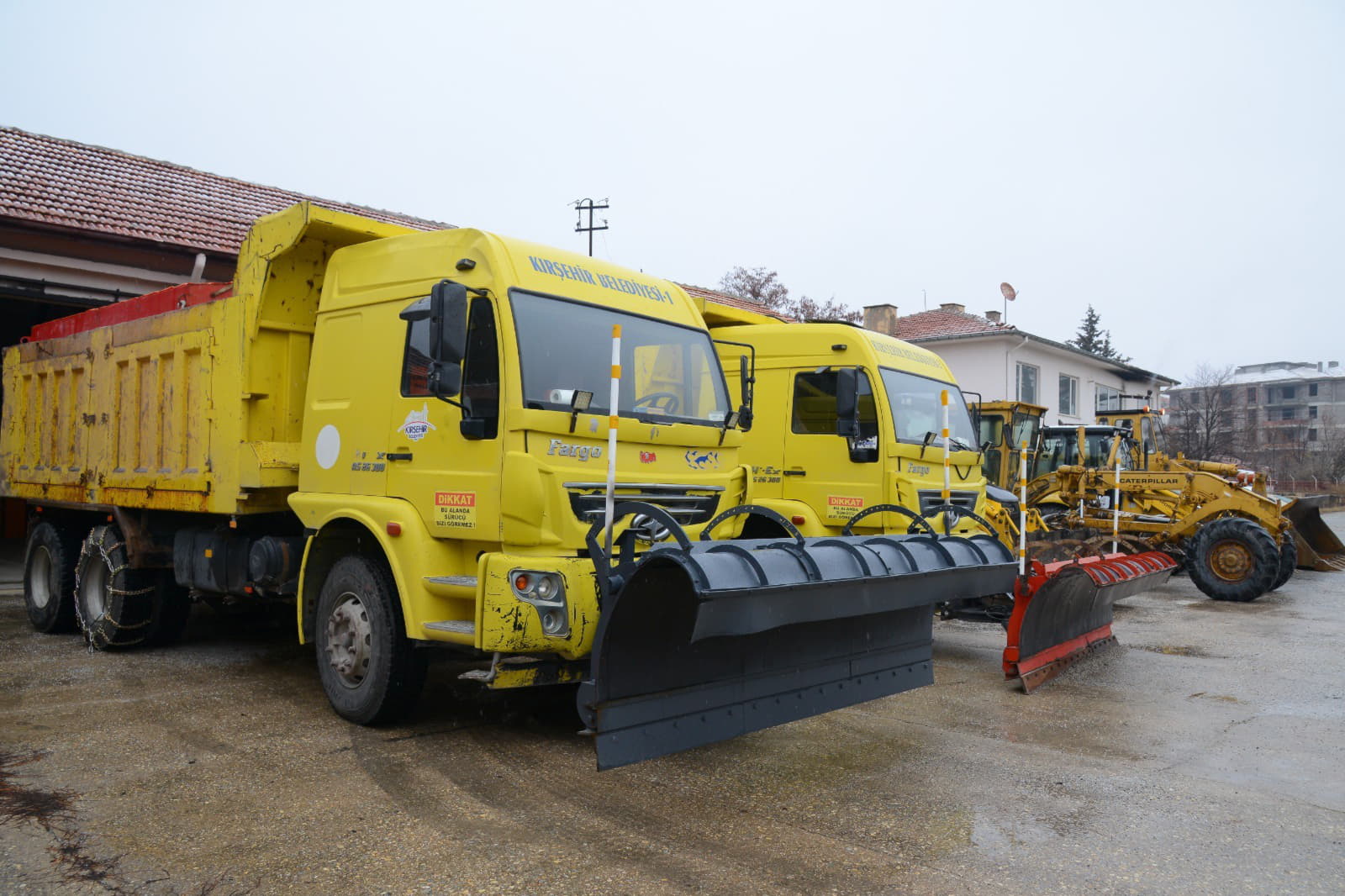 birlikte kapanması muhtemel yollara Kırşehir Belediyesi iş makineleri ve