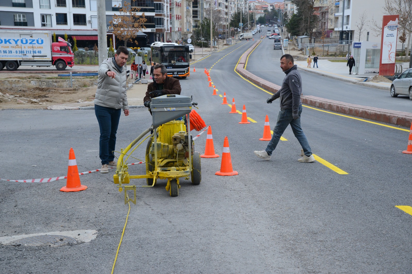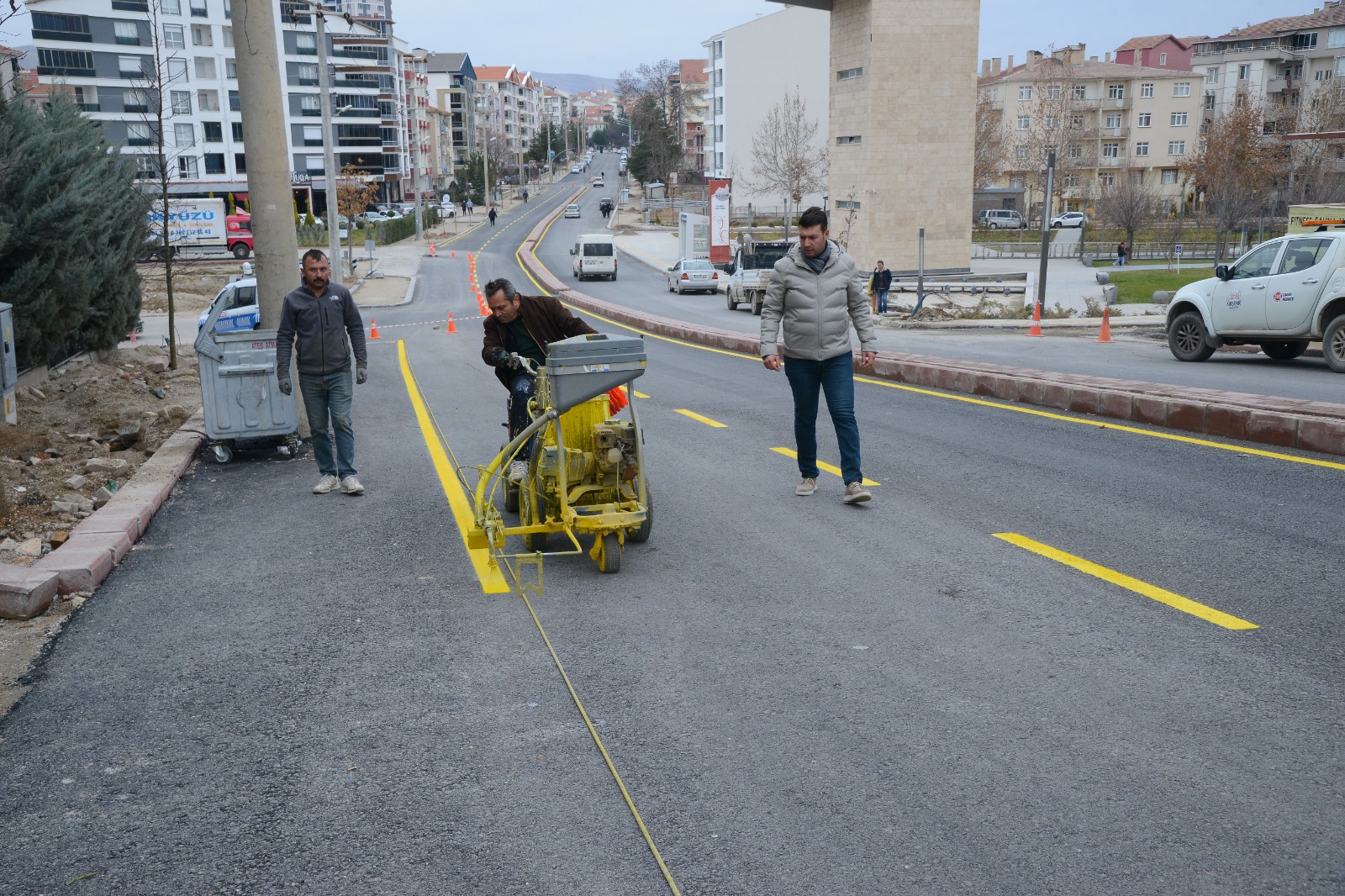 Bulvarı’nda sıcak asfalt seriminin tamamlanmasının ardından yol çizgi çalışması