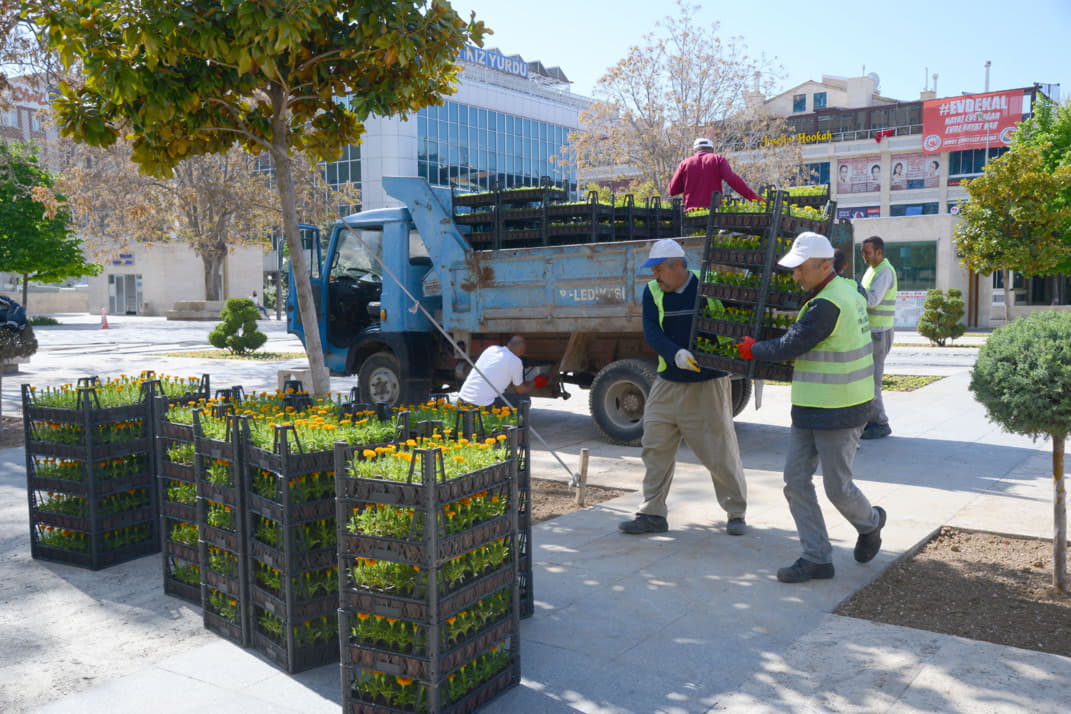 merkezinde estetik çalışmalara imza atıyor. Park ve Bahçeler Müdürlüğü ekipleri