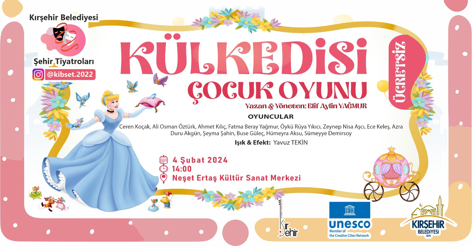 2024 Pazar günü saat 14.00’da ise Külkedisi adlı Çocuk Oyunu ile minik tiyatro