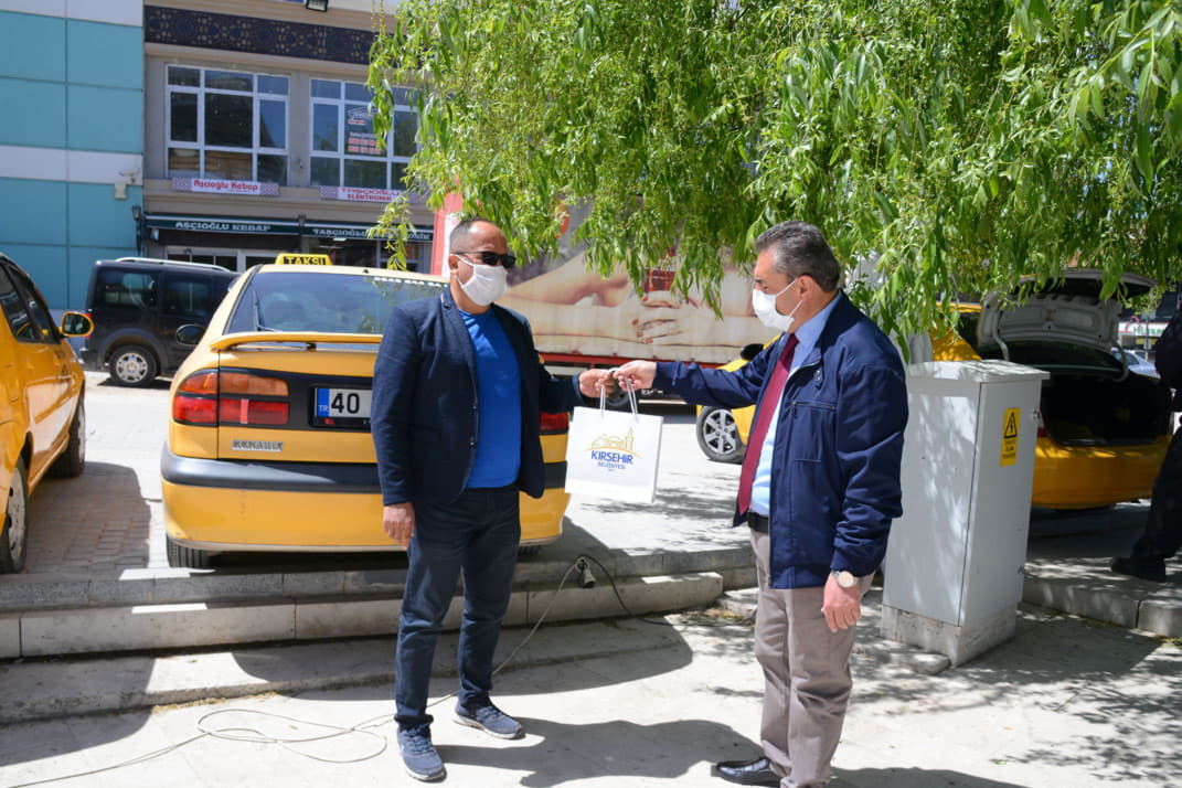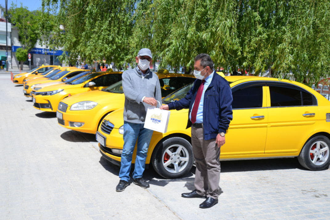 taksiler, dezenfekte edildi ve taksicilere maske dağıtıldı.
