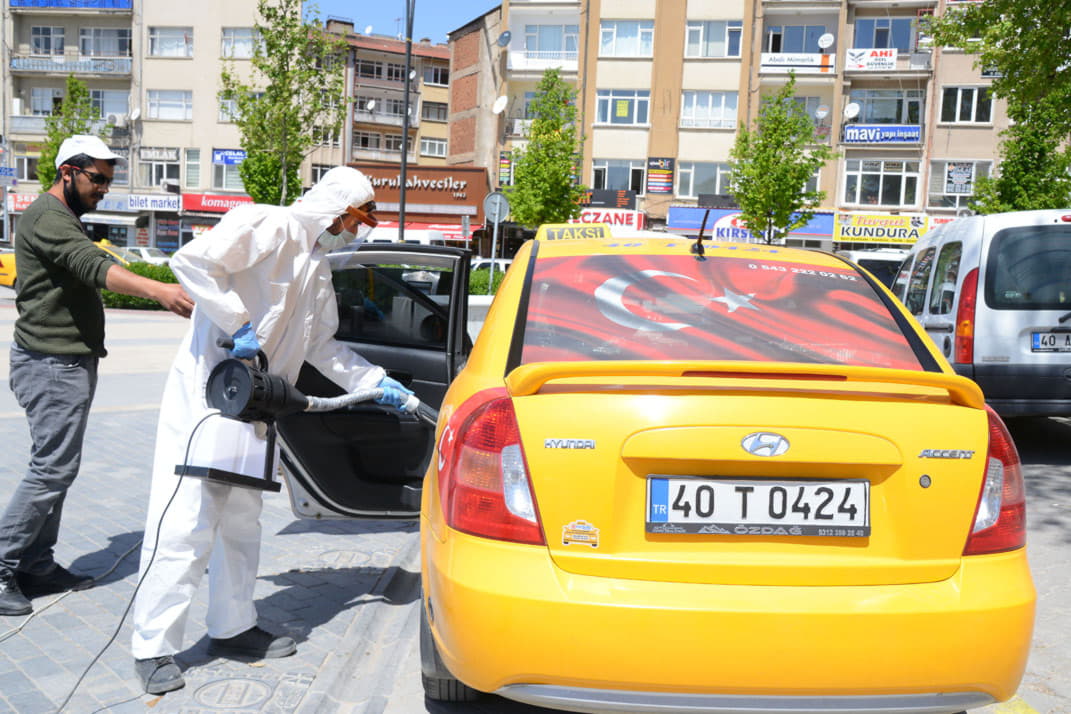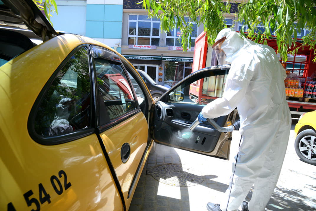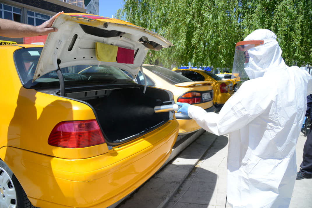 her noktayı dezenfekte ediyoruz. Korona virüsü nedeniyle vatandaşlarımız taksileri