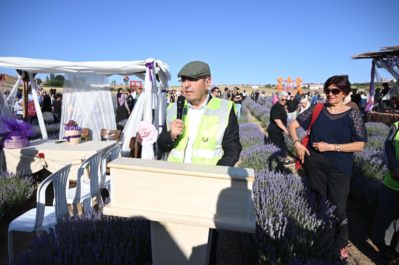 Lavanta Şöleni’nde bir konuşma yapan Belediye Başkanımız Selahattin Ekicioğlu, kuraklığın giderek artması ile birlikte Lavanta ekiminin önemli bir alternatif tarım ürünü haline geldiğini ifade etti. Belediye Başkanımız Selahattin Ekicioğlu, yapmış oldukları çalışmalarla Lavantanın Kırşehir’de yetiştirilebileceğini gösterdiklerini vurgulayarak ekonomik değeri yüksek olan Lavantaların Kırşehir çiftçisi için önemli bir alternatif olduğuna dikkat çekti.