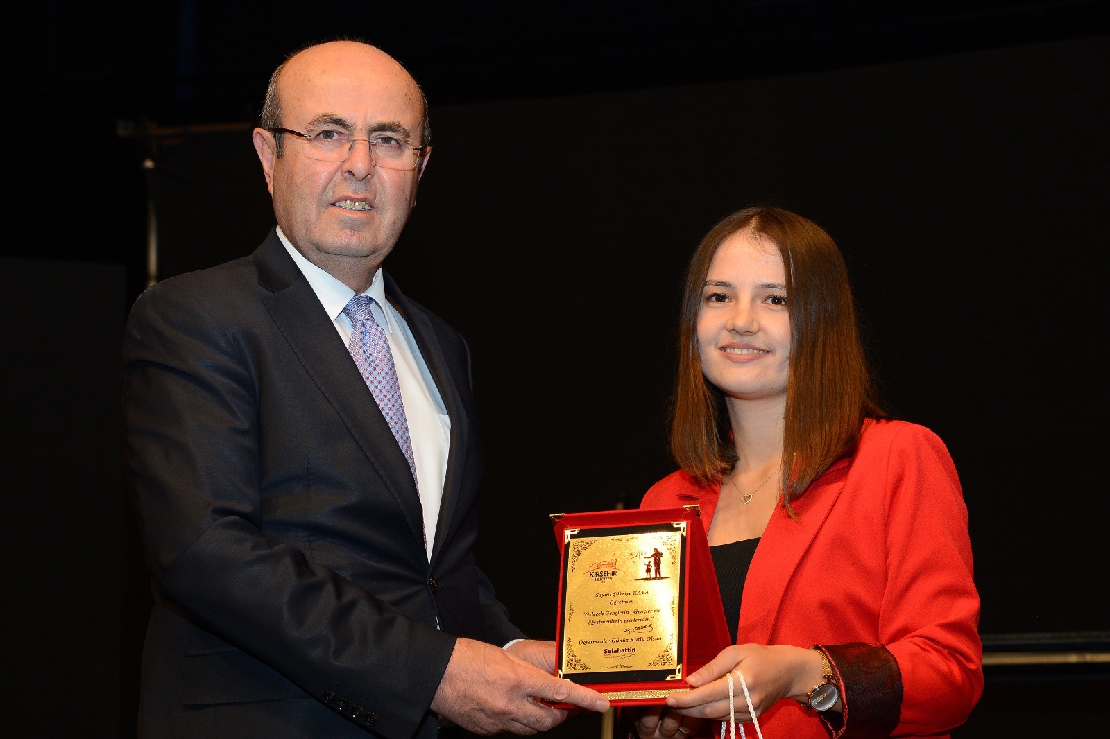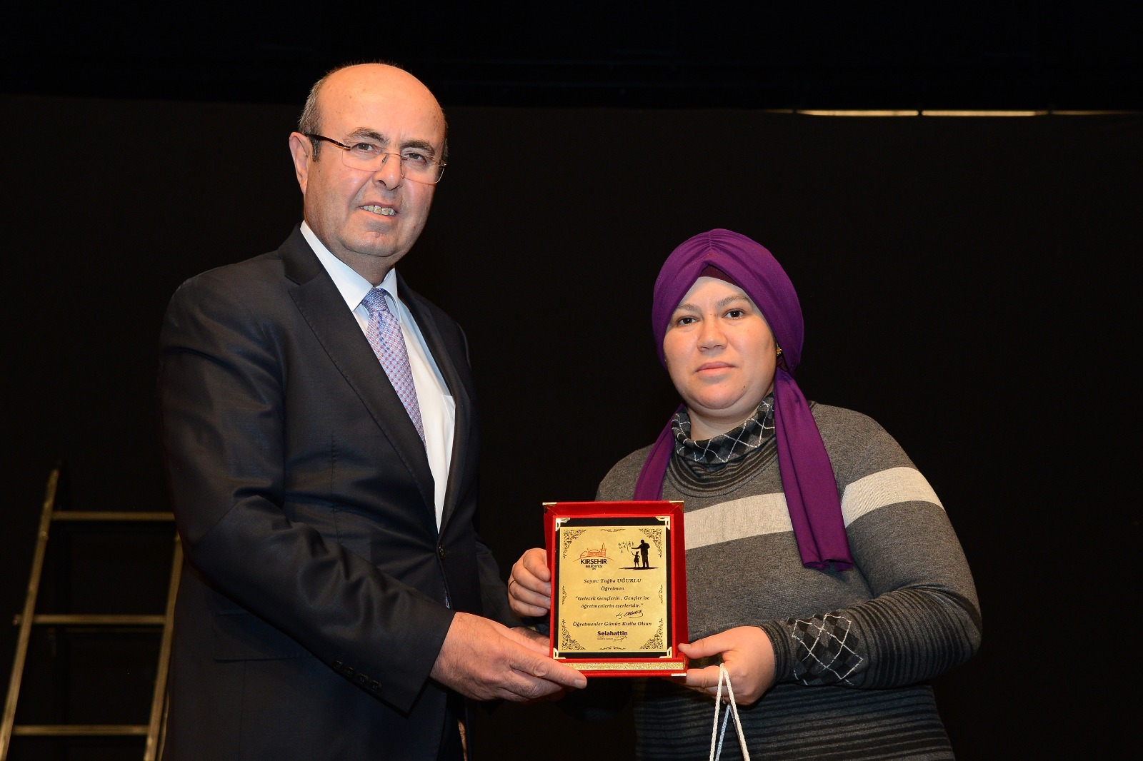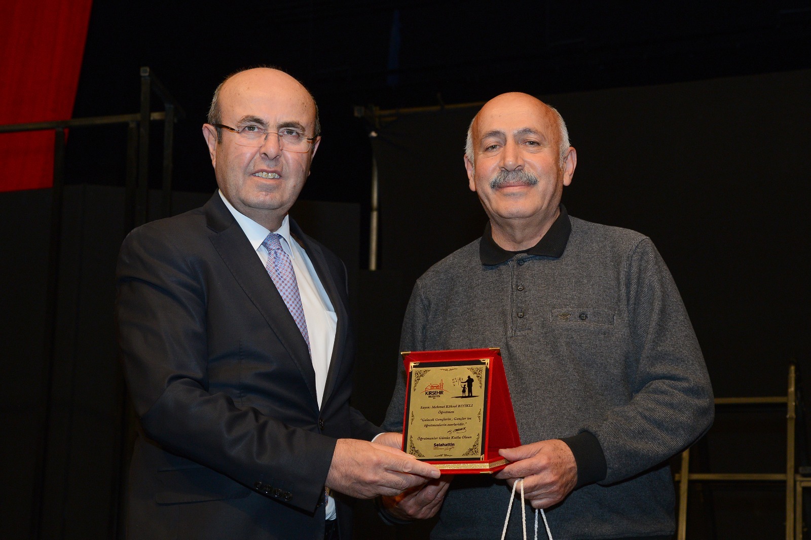 Belediye Başkanımız Selahattin Ekicioğlu, 24 Kasım Öğretmenler Günü'nde, Neşet Ertaş Kültür Sanat Merkezi'nde Ankara Ekin Tiyatrosu tarafından sahnelenen Memleketin Kısmeti adlı oyun öncesi öğretmenlik mesleğinde görevdeki en kıdemli öğretmenlerimizden Mehmet Köksal Bıyıklı'ya, en genç öğretmenlerimizden Şükriye Kaya'ya ve ataması yapılmayan öğretmenimizi temsilen de Tuğba Uğurlu'ya günün anısına plaketlerini takdim etti.