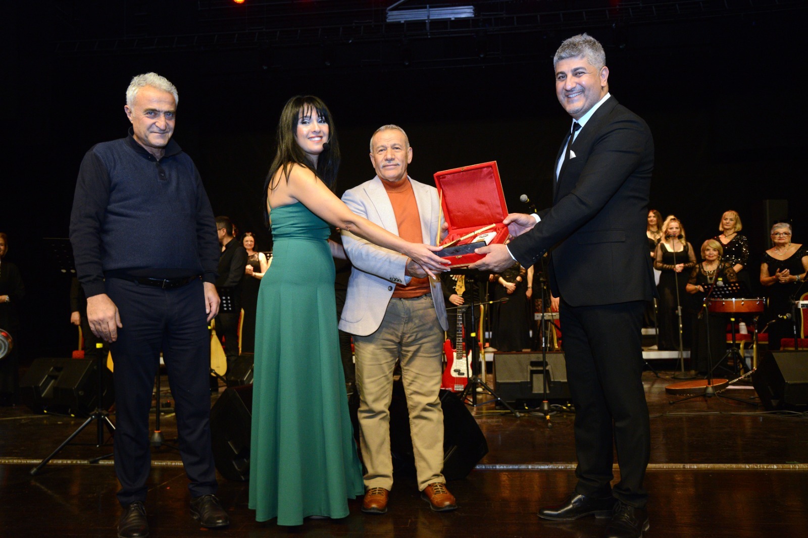 Yardımcımız Nuri Araz, günün anısına plaket takdimi yaparken, Belediye