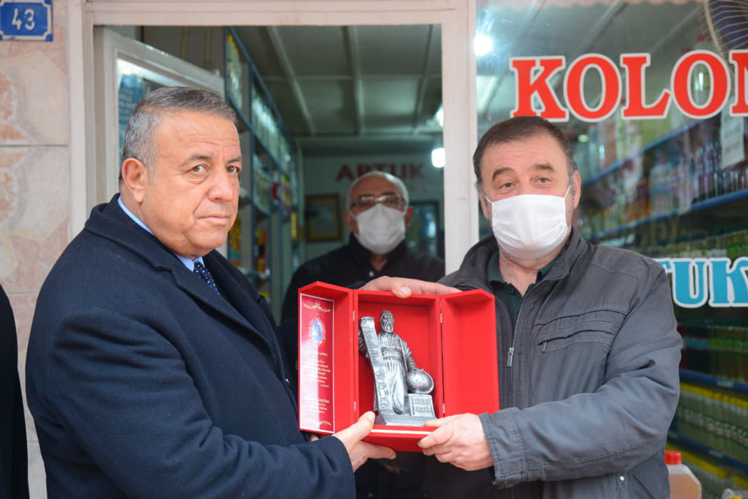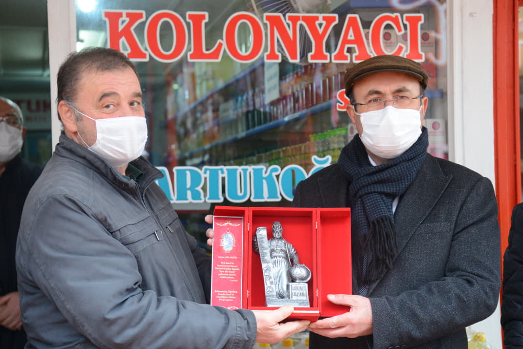 Artukoğulları Kolonyacısı işletmecisi Salih Artuk'u işyerinde ziyaret ederek