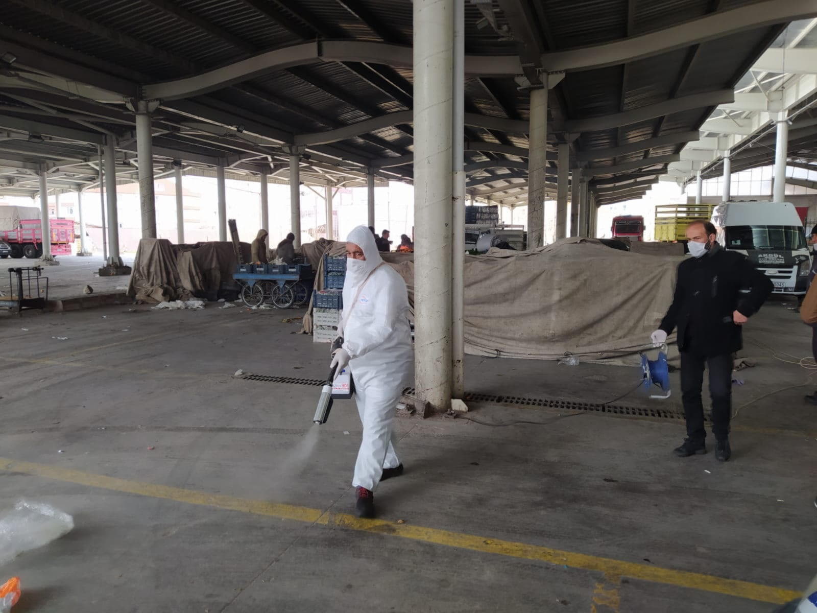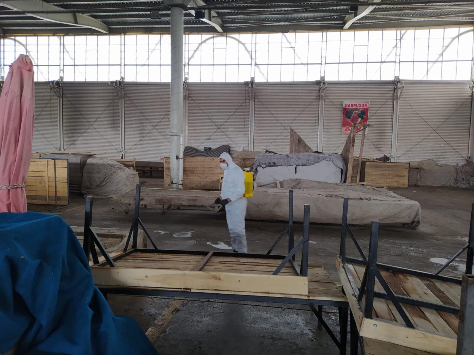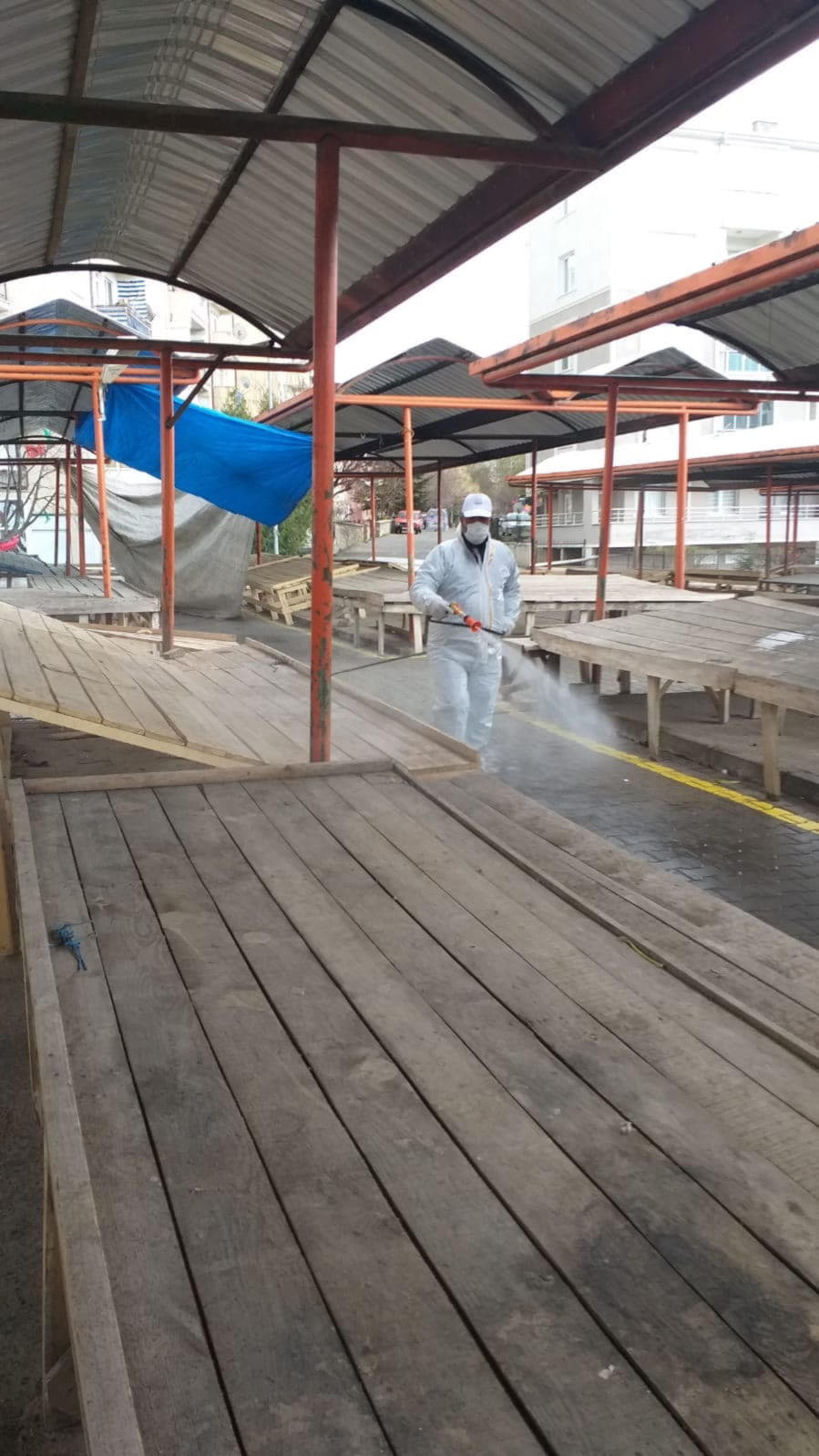 olarak kullandığı pazar yerlerini de dezenfekte etti. Cumartesi günü kurulan