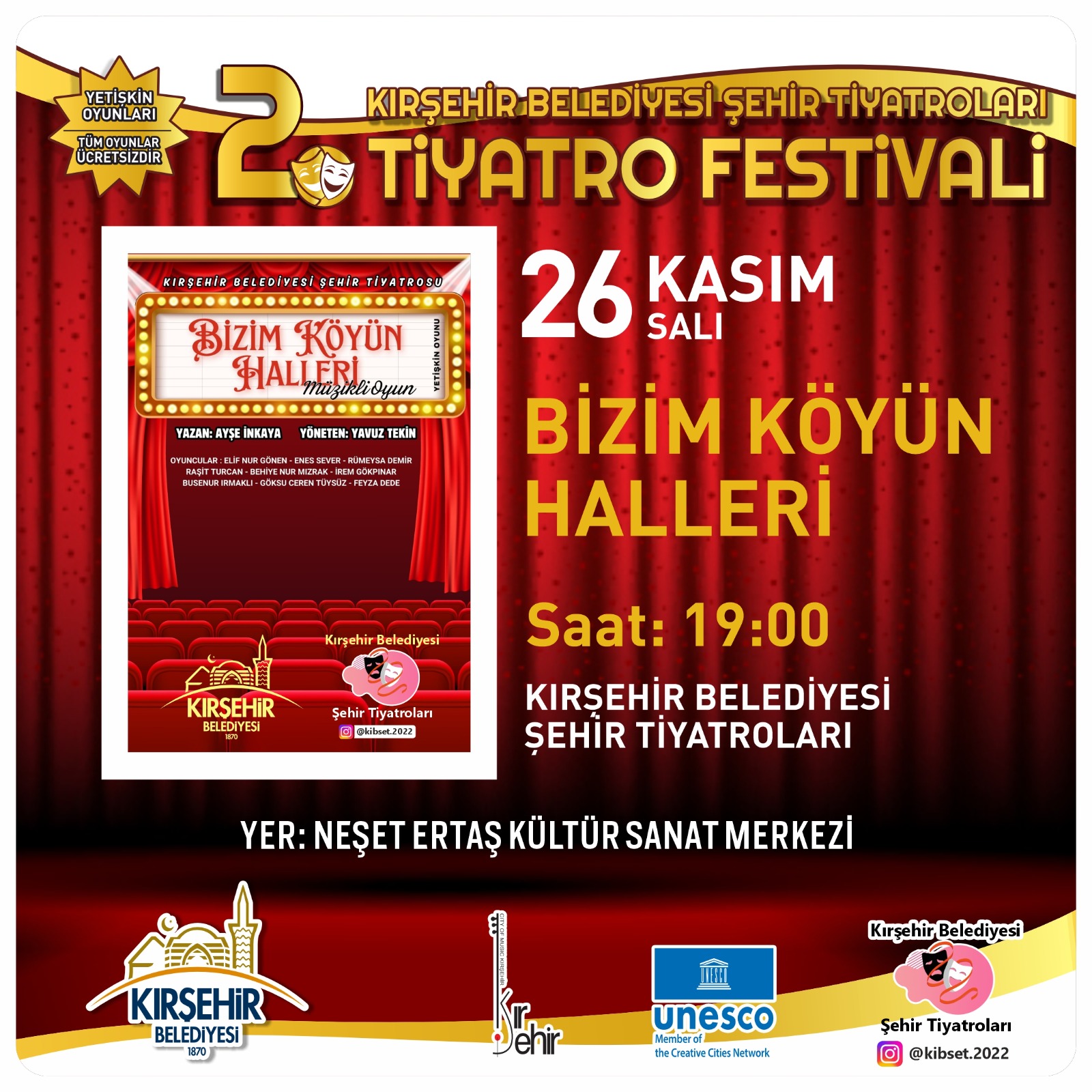 gerçekleştirdiğimiz Tiyatro Festivalimizde Kırşehir Belediyesi Şehir Tiyatroları