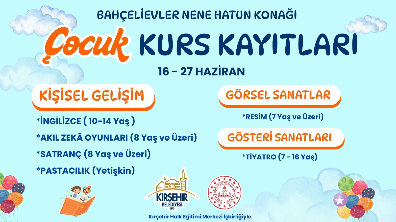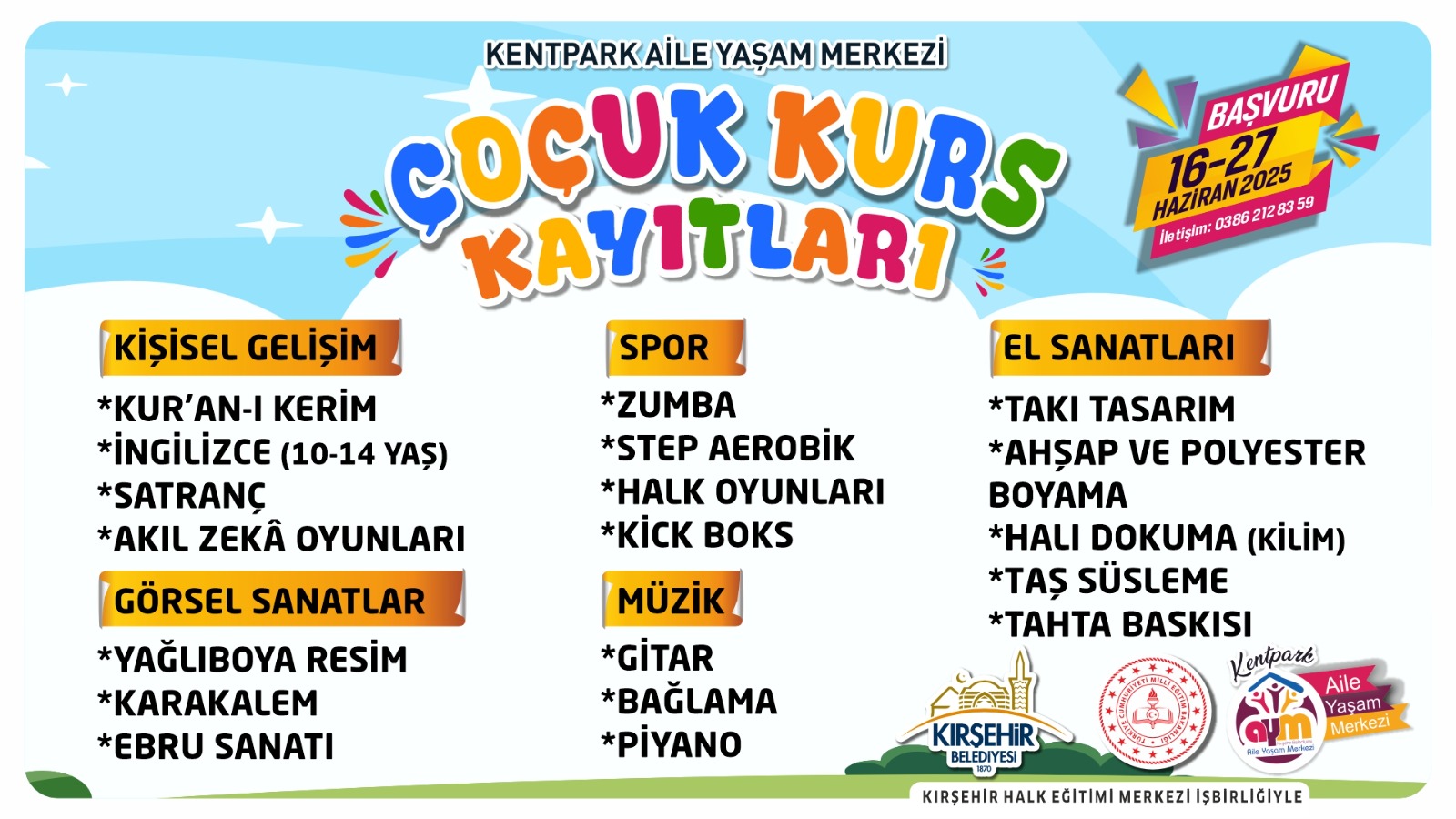 Merkezi Çocuk Kursu Kayıtları ise 16-27 Haziran