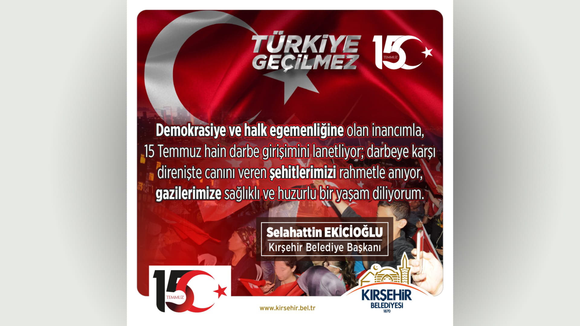 BELEDİYE BAŞKANIMIZ SELAHATTİN EKİCİOĞLU, 15 TEMMUZ DEMOKRASİ VE MİLLİ BİRLİK GÜNÜ DOLAYISIYLA MESAJ YAYINLADI