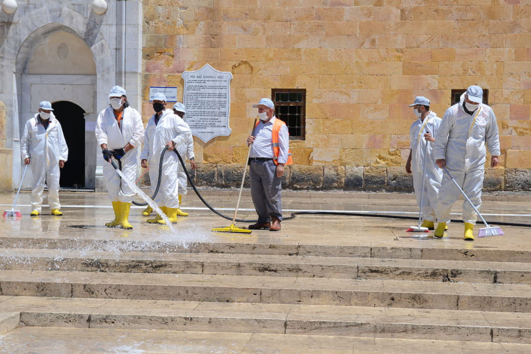 Kırşehir Belediyesi ekipleri tarafından, yeni tip koronavirüs (Kovid-19) salgını önlemleri kapsamında taksiler, dezenfekte edildi ve taksicilere maske dağıtıldı.