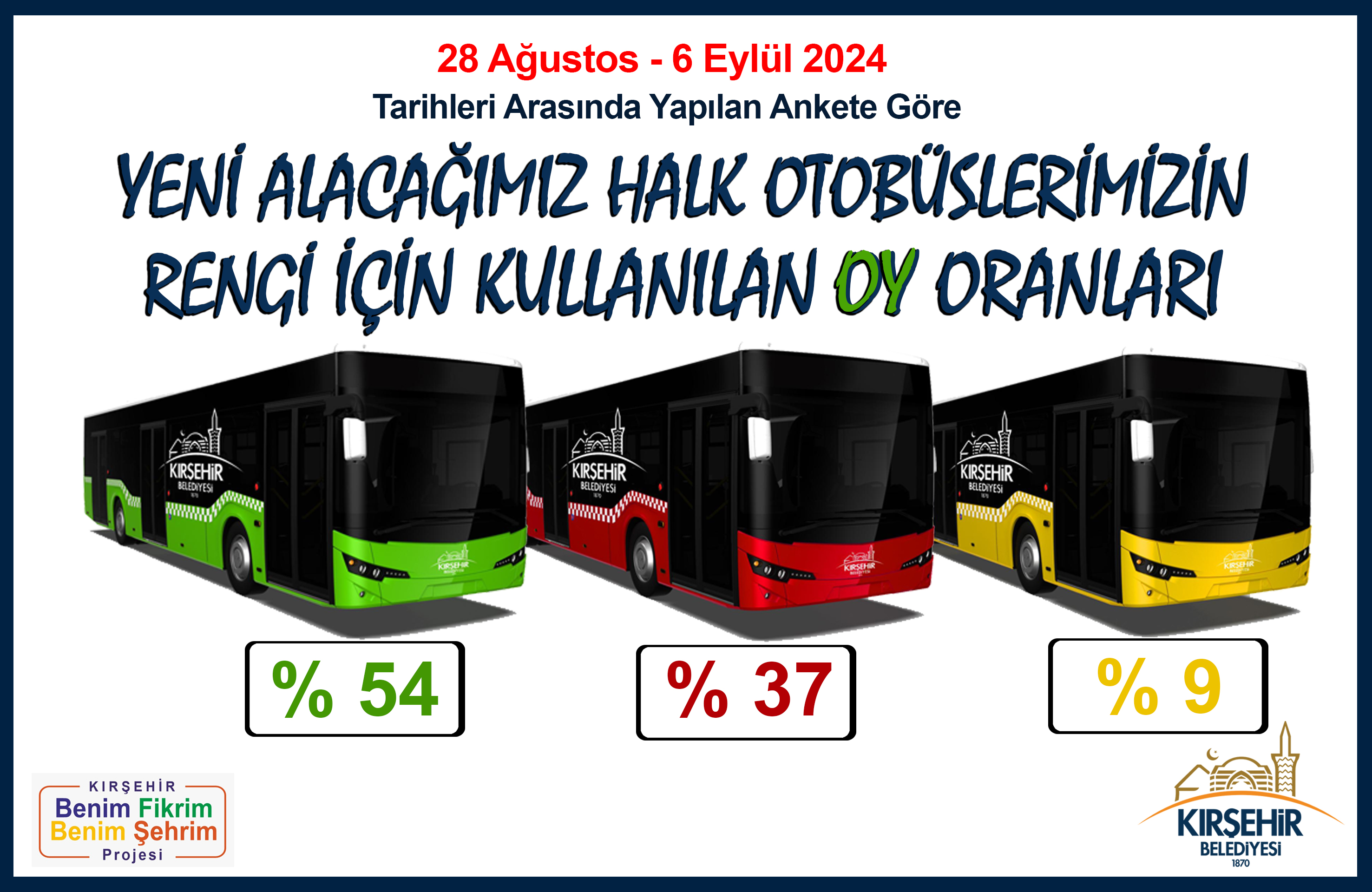 YENİ ALINACAK HALK OTOBÜSLERİNİN RENGİ İLE İLGİLİ DİJİTAL OYLAMA SONA ERDİ
