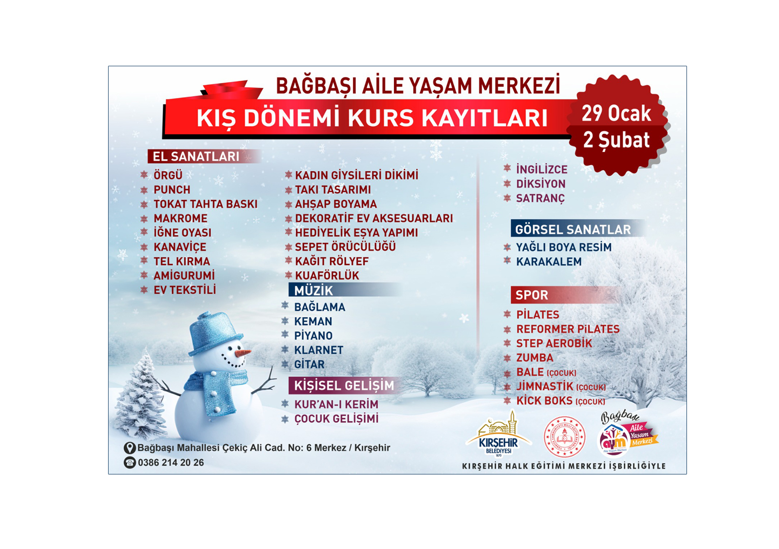 BAĞBAŞI AİLE YAŞAM MERKEZİ KIŞ DÖNEMİ KURS KAYITLARI BAŞLIYOR