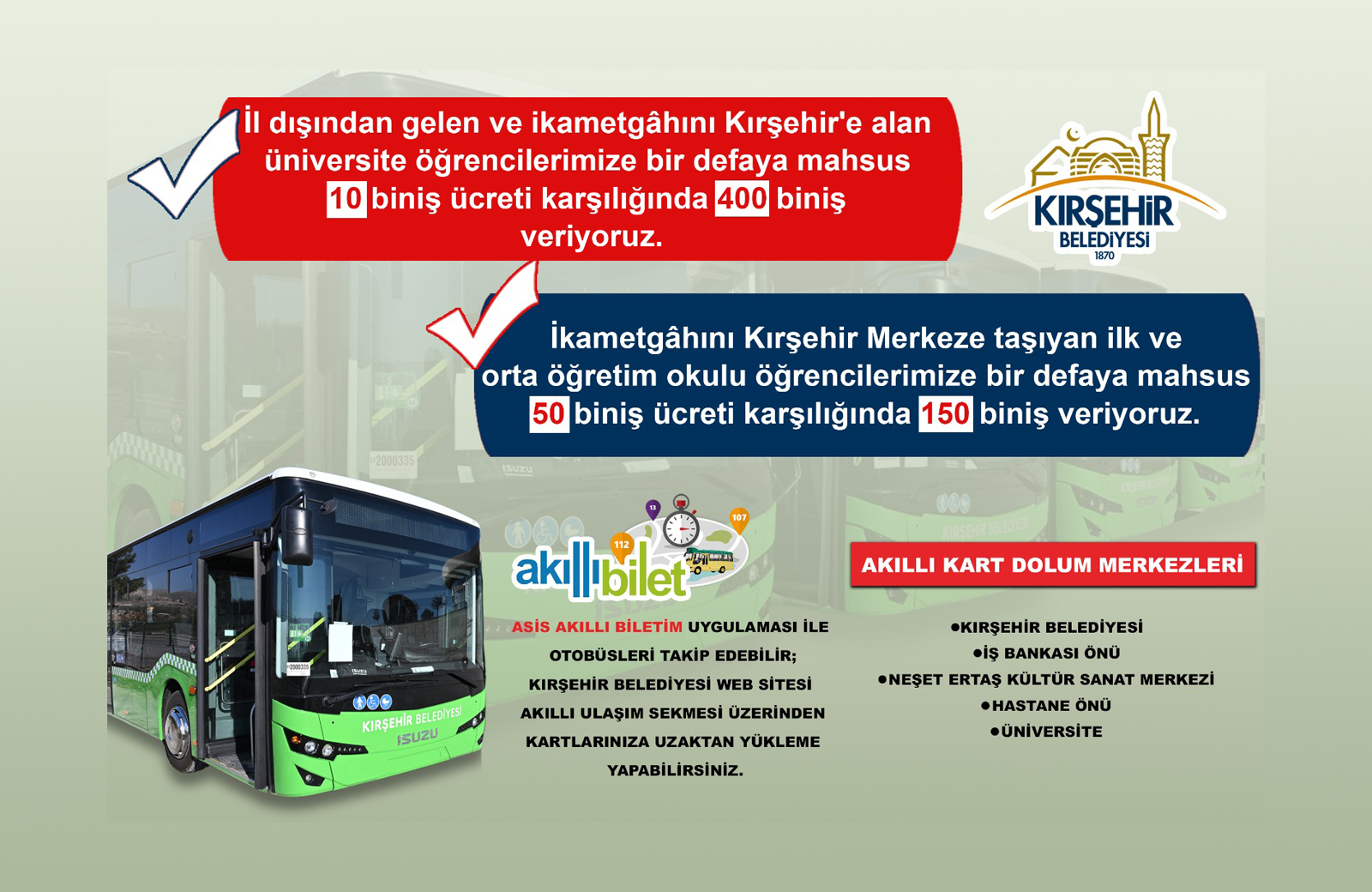 KIRŞEHİR BELEDİYESİ, İKAMETGÂHINI KIRŞEHİR’E ALAN ÖĞRENCİLERE ULAŞIM DESTEĞİ SUNUYOR