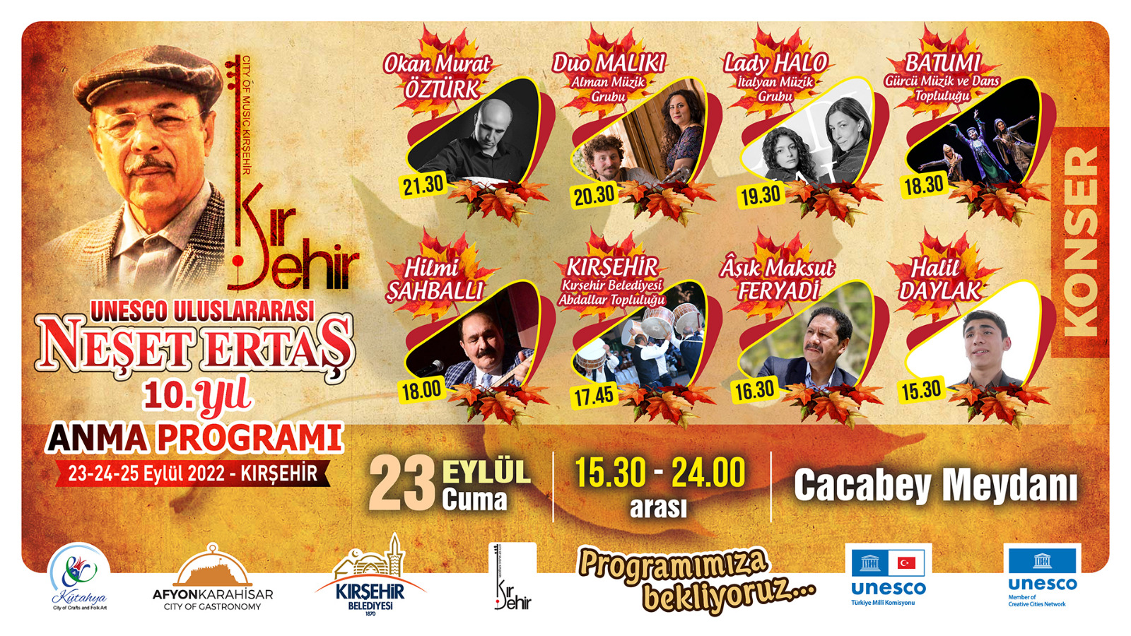 “UNESCO ULUSLARARASI NEŞET ERTAŞ 10. YIL ANMA PROGRAMI” 23-24-25 EYLÜL’DE
